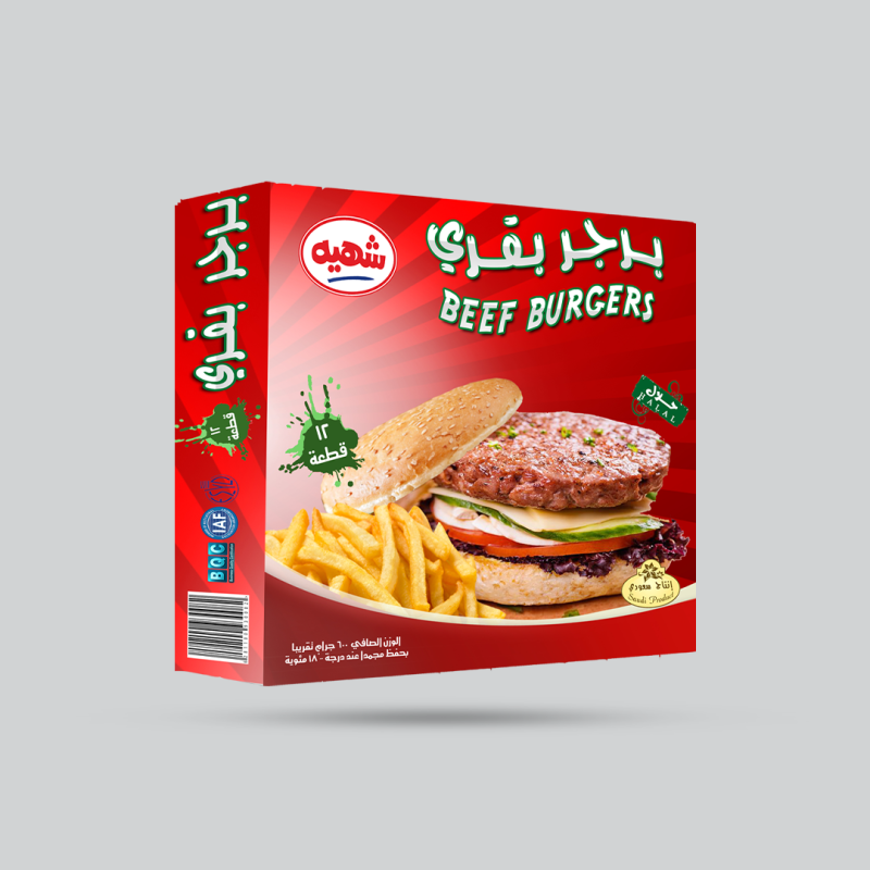 برجر بقري 12 قطعة 6 باكت في الكرتون